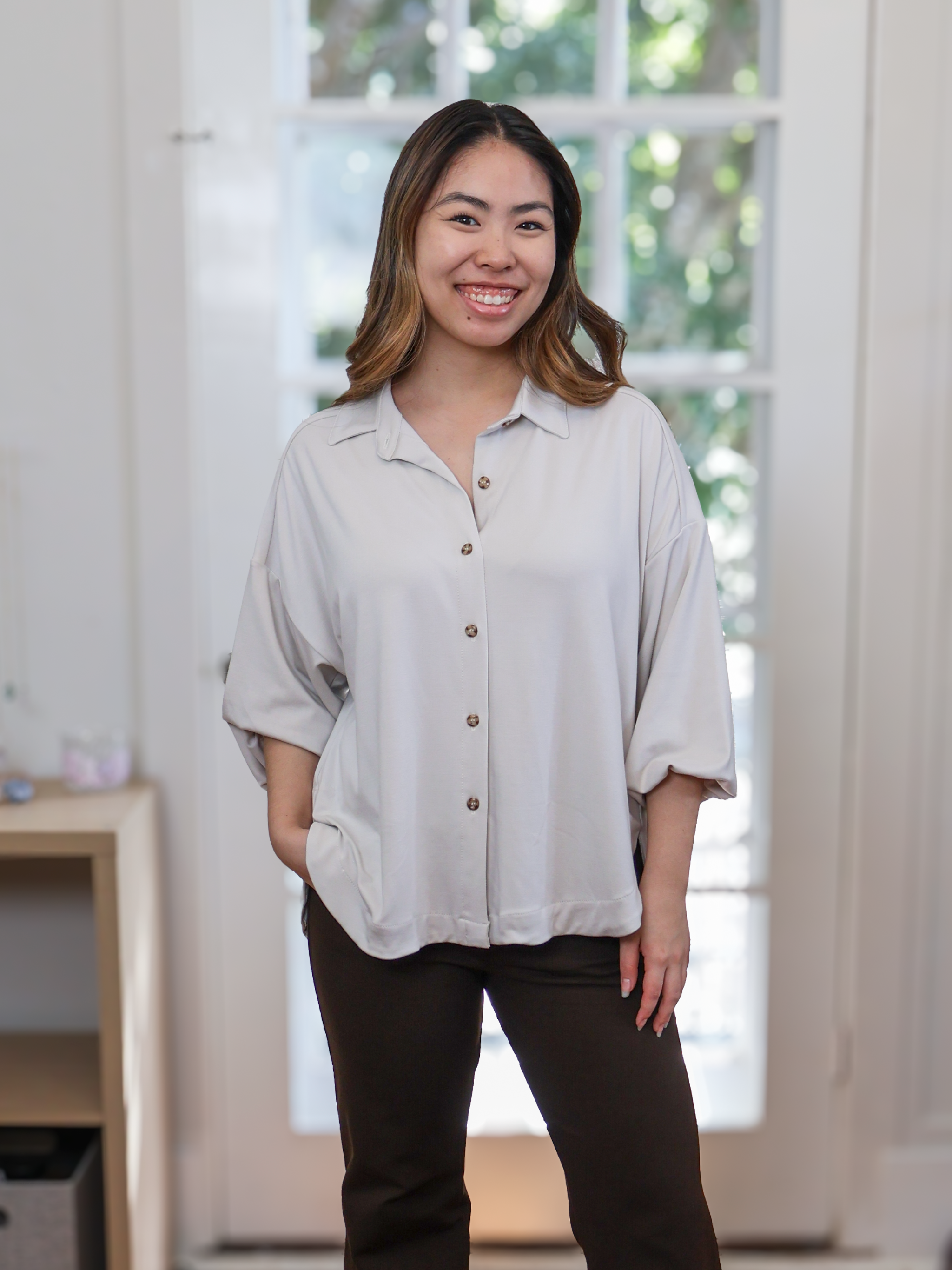 What I really love about this top is the material it is made from—so breathable! I will definitely purcahse again.