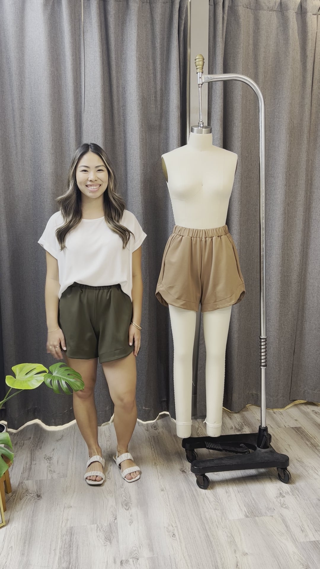 A loose fitting, longer short with a curved hem and shorter out-seam to elongate the legs. The full elastic waistband makes it comfortable for all day wear.