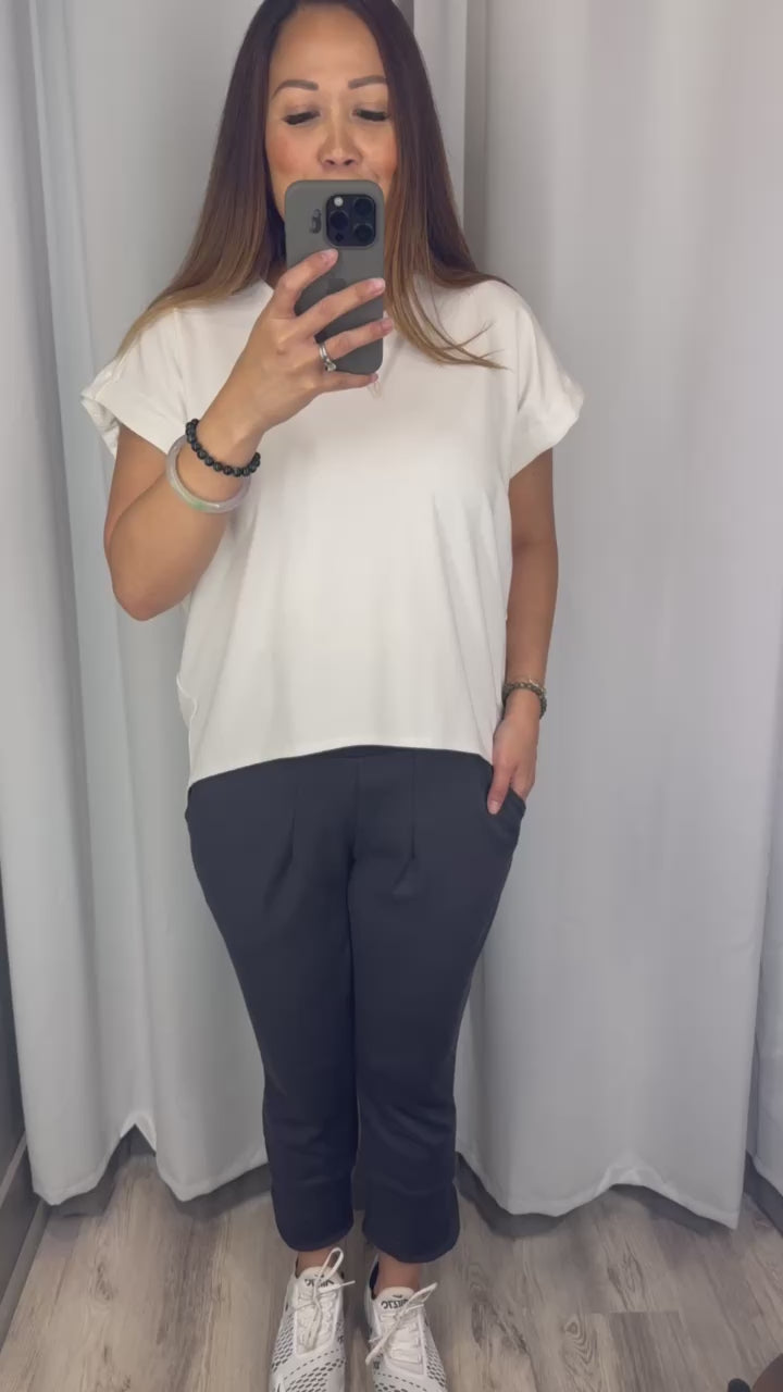This is the pant that makes you feel pulled together—even on days when you're anything but. The SmoothBand Waist gives you that gentle hug in the midsection (without any digging), and you can wear it high or low depending on your mood or outfit. And the tulip hem? That’s the design detail that takes these pants to the next level. It’s subtle, but it adds a polished finish that instantly dresses up your outfit—like a built-in style upgrade. You’ll find yourself reaching for Miki when you want to feel comfortable but still look intentional. The deep, angled pockets are the cherry on top—roomy enough to be useful, but placed just right so they flatter (not add bulk). Whether you're 4’10” or 5’6”, the length hits just right, giving you that perfectly balanced, petite-friendly silhouette.