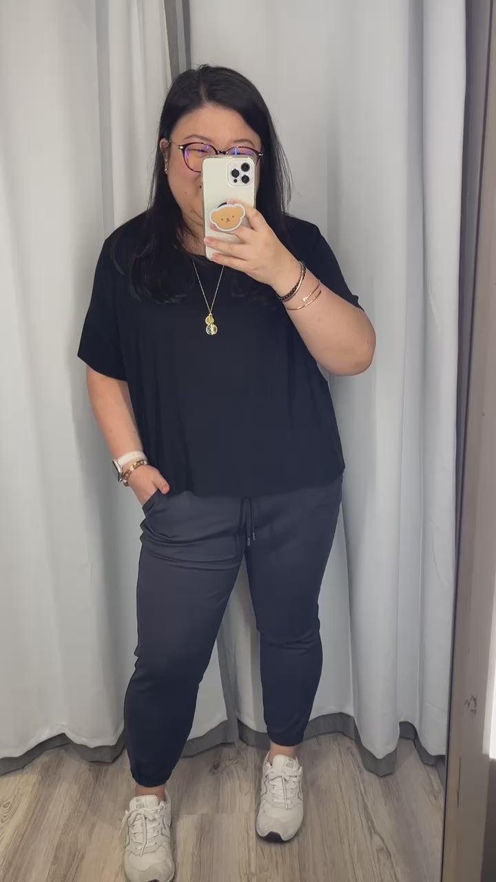 An athleisure inspired jogger, tailored for women 5'6" and under. Designed with these proportions in mind, these joggers feature a tapered leg design and elastic waistband and drawstring closure for an all day, comfortable fit. Say goodbye to unflattering joggers that cover your feet!