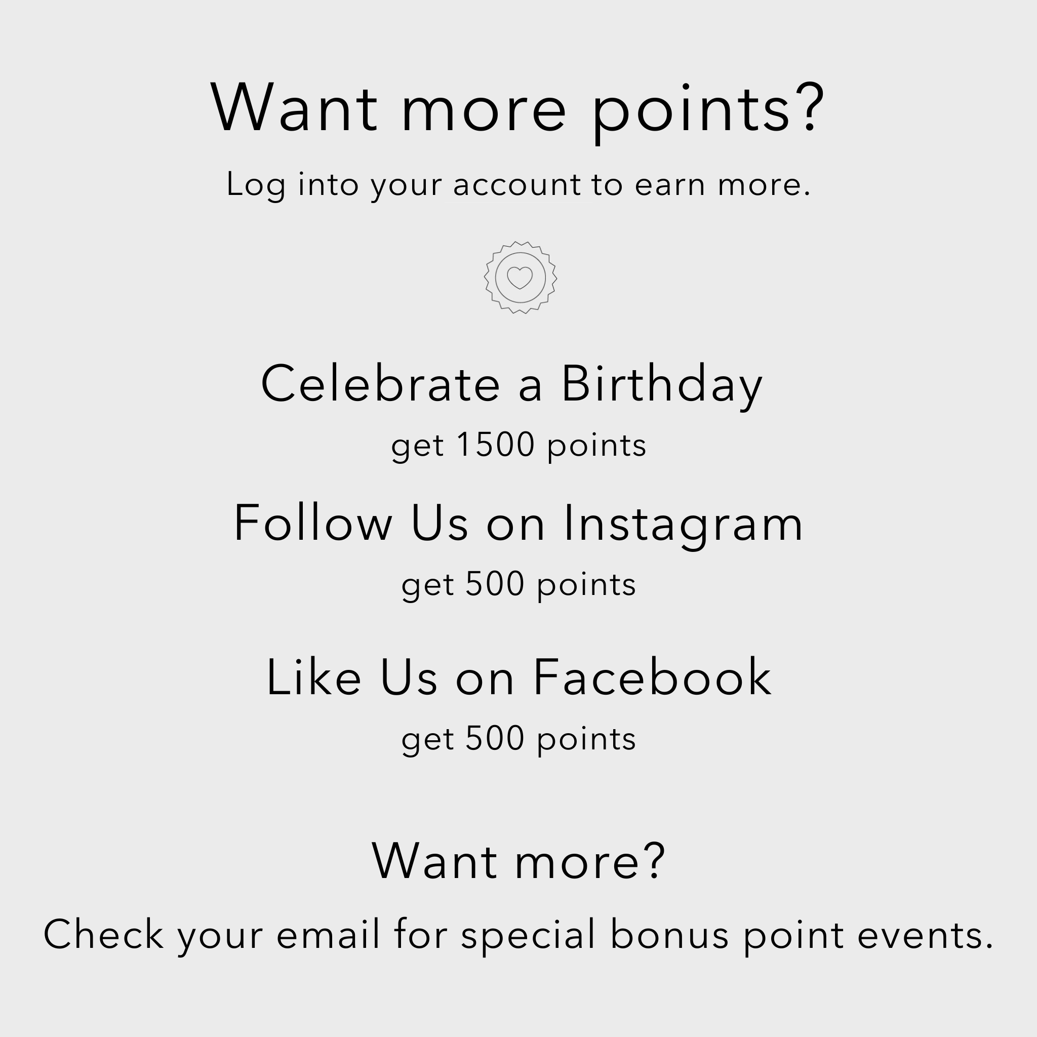 IMPORTANT: If you've shopped with us before, please create your account using the email address that you've used to shop with us previously. Any points you've accumulated will be associated with the email that you used to checkout with us online or in-store. We want you to be able to access all of your hard-earned points, so make sure you're using the same email!